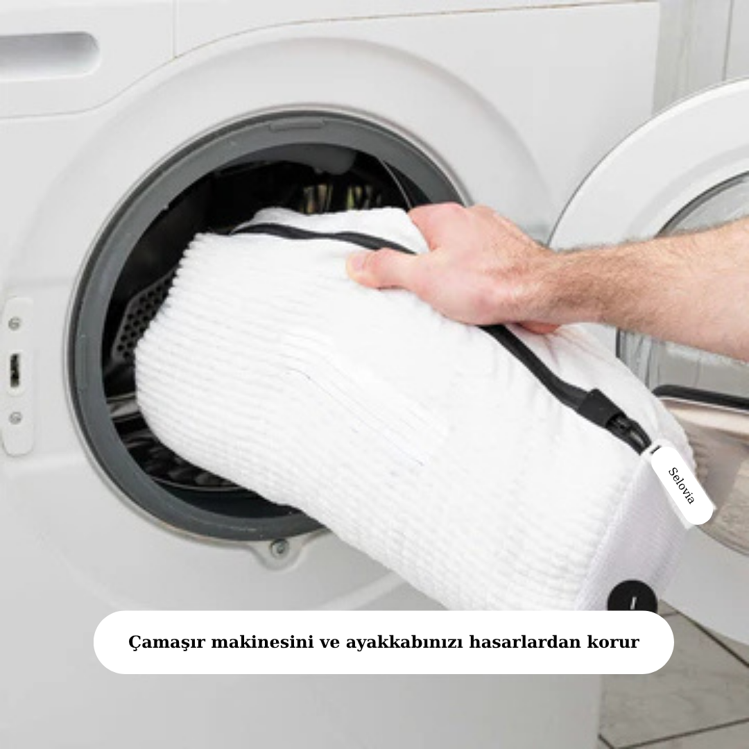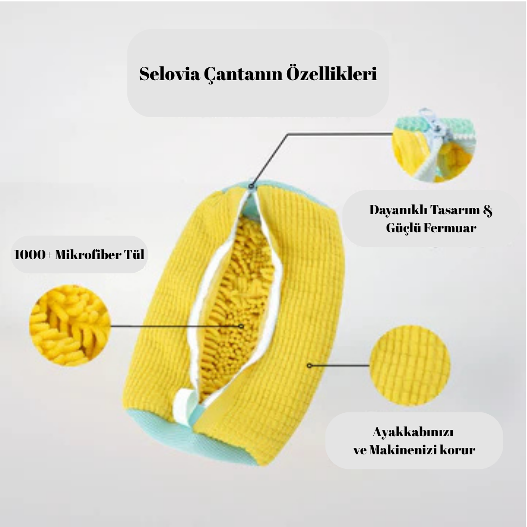 Selovia ayakkabı çantası, ayakkabılarınızı temizlemenin en güvenli yoludur. Hem ayakkabılarınızı hem de çamaşır makinenizi korurken binlerce yumuşak lif kiri beraberinde temizler.