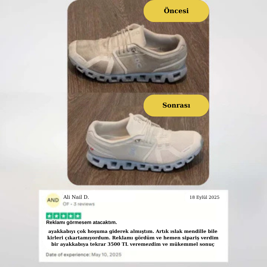 Peki ya Sonuç? Yeni alınmış gibi görünen, daha uzun süre dayanan ve şekil bozukluğu olmayan mağazadan yeni alınmış bir ayakkabı.